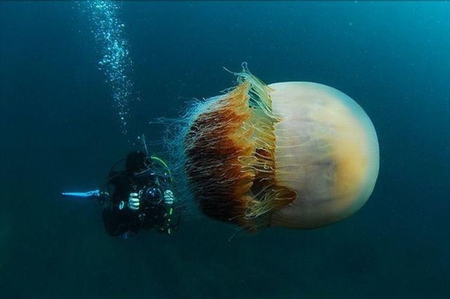 The lion's mane jellyfish (Cyanea capillata), also known as hair jelly, is the largest known species of jellyfish. Its range is confined to cold, boreal waters of the Arctic, northern Atlantic, and northern Pacific Oceans. The largest recorded specimen found, washed up on the shore of Massachusetts Bay in 1870, had a bell (body) with a diameter of 2.3 metres (7 ft 6 in) and tentacles 37 m (120 ft) long. (s)